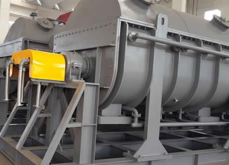 紡織印染污泥干燥機——空心槳葉干燥機,空心軸上密集排列著楔型中空槳葉,熱介質(zhì)經(jīng)空心軸流經(jīng)槳葉。單位有效容積內(nèi)傳熱面積很大,熱介質(zhì)可以是水蒸汽,也可以是熱水或?qū)嵊偷?。傳熱介質(zhì)通過旋轉接頭,流經(jīng)殼體夾套及空心攪拌軸,空心攪拌軸依據(jù)熱介質(zhì)的類型而具有不同的內(nèi)部…